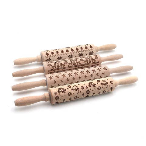 キッチンベーキング用のカスタム環境にやさしい木製刻印エンボスキッズ麺棒