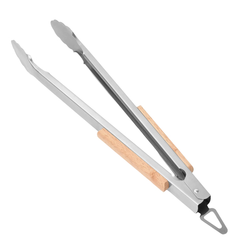 Moderne Roestvrijstalen Keukentang Met Rubberen Houten Handvat Voor Buiten Bbq Grillen